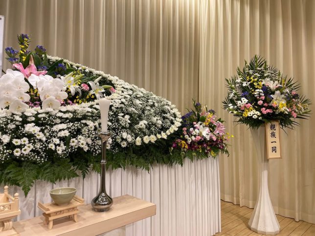身内のみのささやかな葬儀でしたが、花を愛でるのが好きだった父のために、お花をいっぱい飾った祭壇にしました。