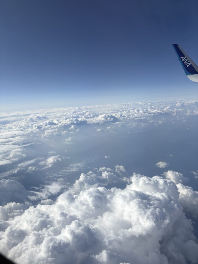 飛行機の窓から見えるこの光景、大好きです。雲の上に乗りたくなります。